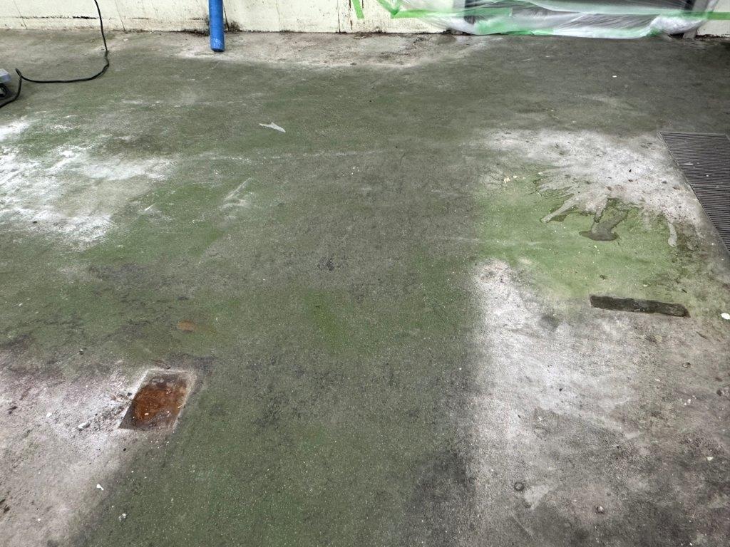 | 施工条件 | ■フラットタイプの塗床材での塗り替え ■業務終了後の夜間工事での作業 |