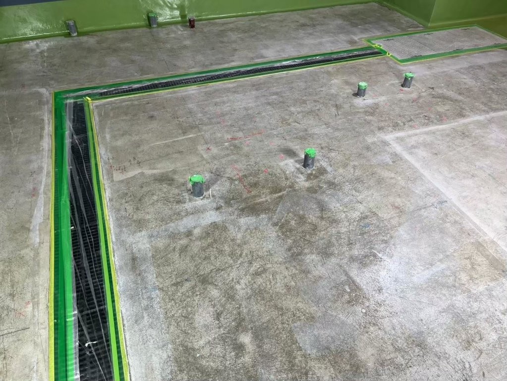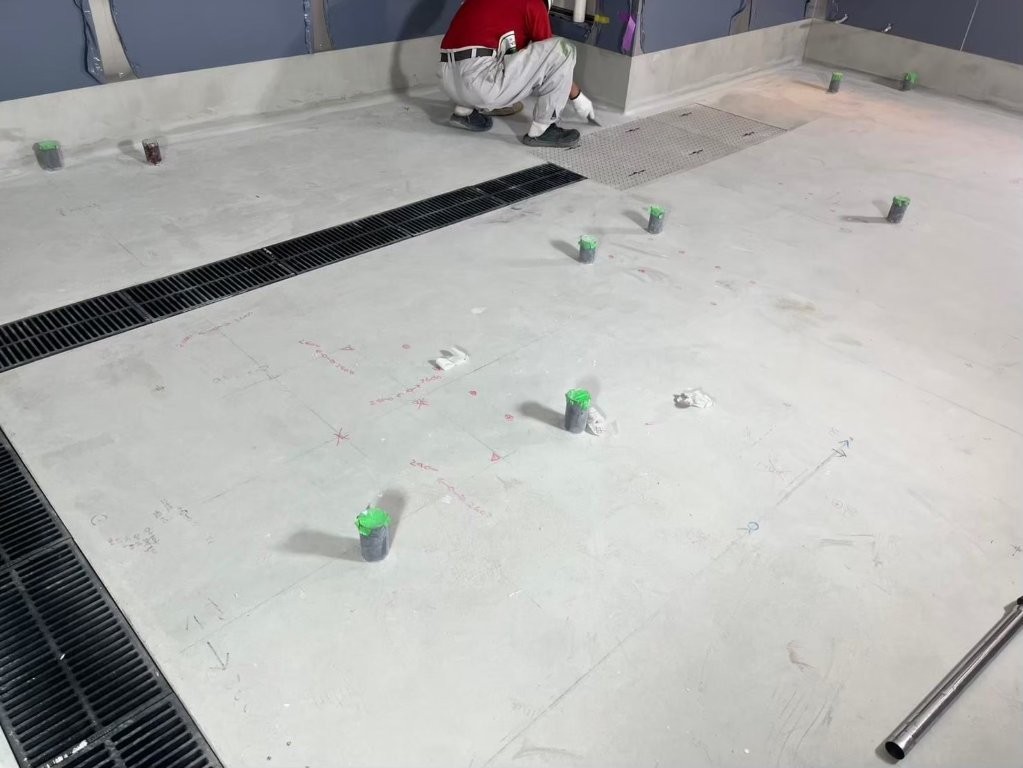 骨材を含んだ防滑仕上げを施工。濡れた状態でも滑りにくい安全な床面を実現しました。