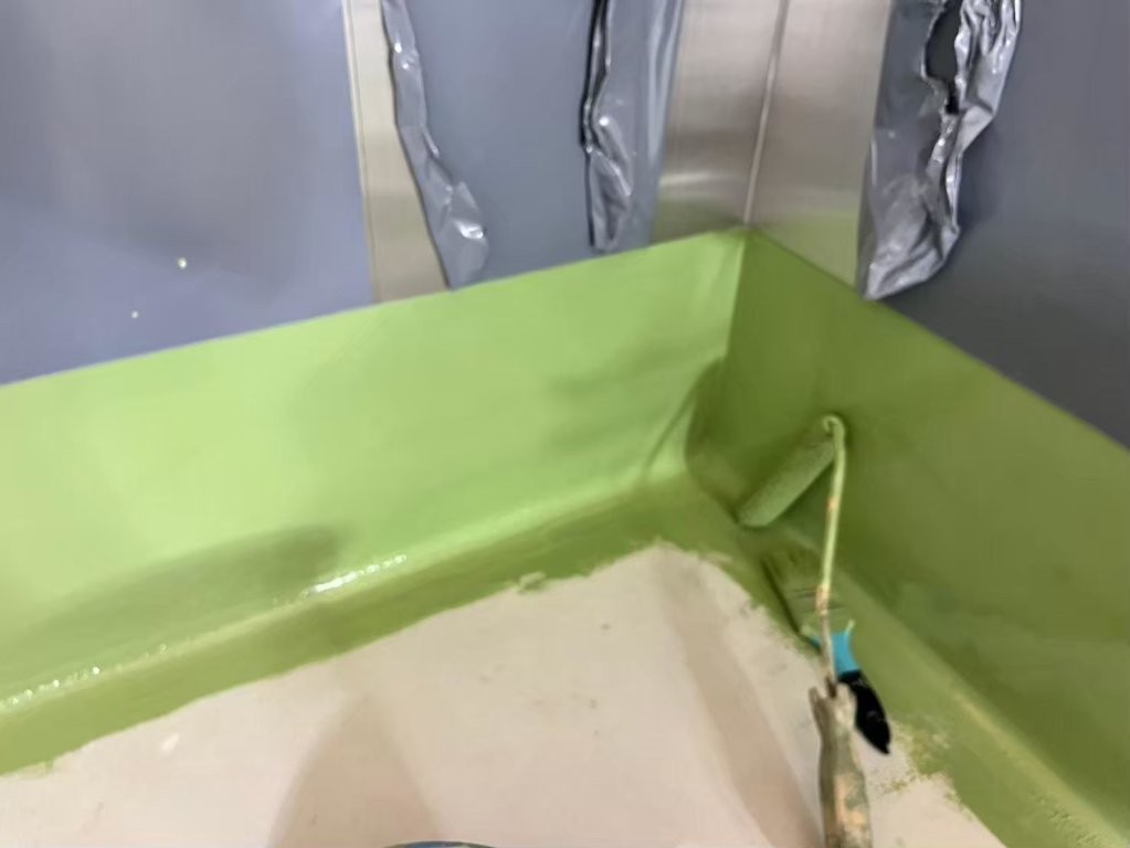 壁際の立ち上がり部分(巾木)にも塗布を行い、油や水が壁面との境目から侵入するのを防止。厨房特有の水回り環境に対応します。
