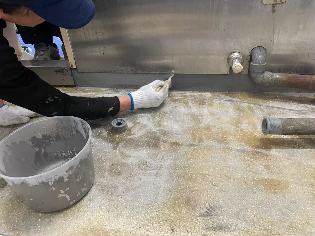 壁際まで丁寧に塗布し、水や汚れが染み込みにくい構造に。