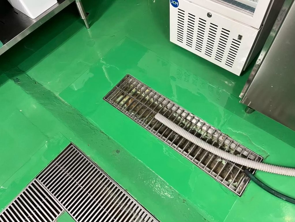 ✅ 水溜まりがなくなり、厨房全体の衛生環境が改善。