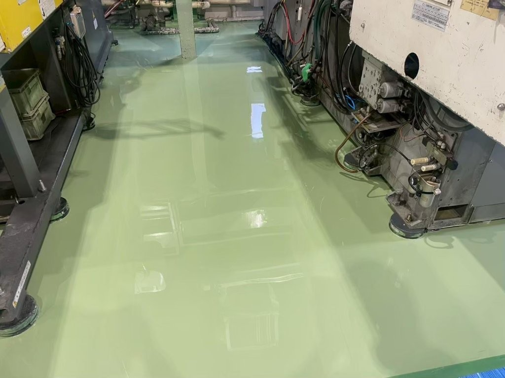 ムラのない均一な塗膜が形成され、滑らかで明るい緑色の床面に生まれ変わりました。