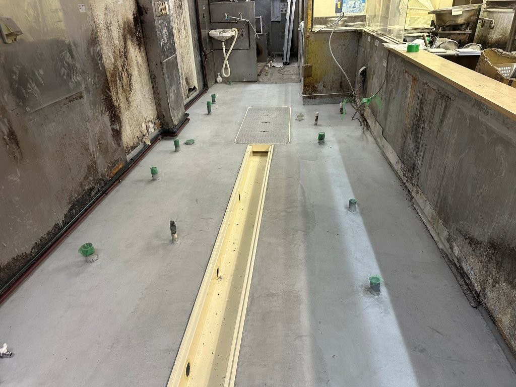 耐久性・防滑性・清掃性を兼ね備えた厨房床が完成。