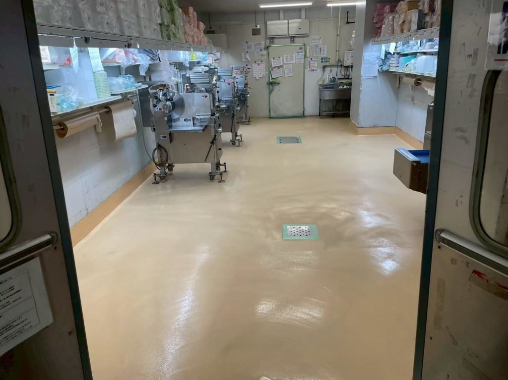 仕込み作業にも支障が出ない状態で引き渡しを行い、安全性・衛生性・耐久性を兼ね備えた精肉作業室の床が完成しています。