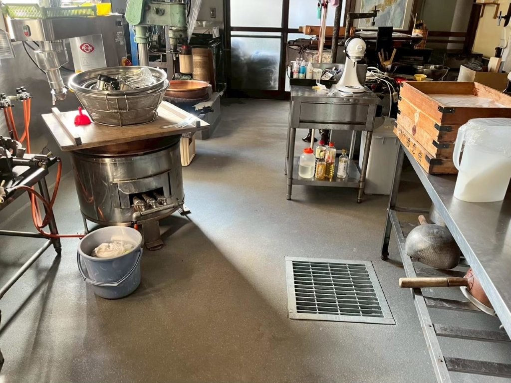 施工後に設備を戻した状態でも、床面が落ち着いており、実際の運用を見据えた仕上がりとなりました。作業動線や排水まわりも含めて使いやすい状態へ整えています。