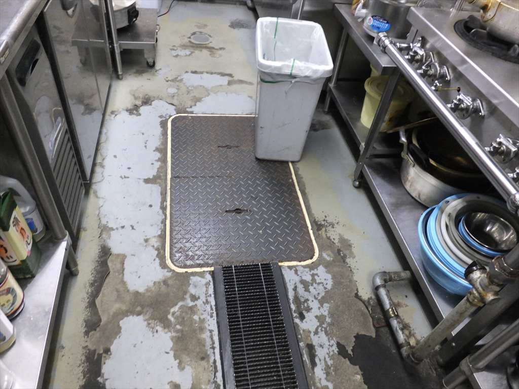 和食店厨房の排水桝設置・タイル補修|東京都港区 作業場の床改修工事(タフクリートMH)